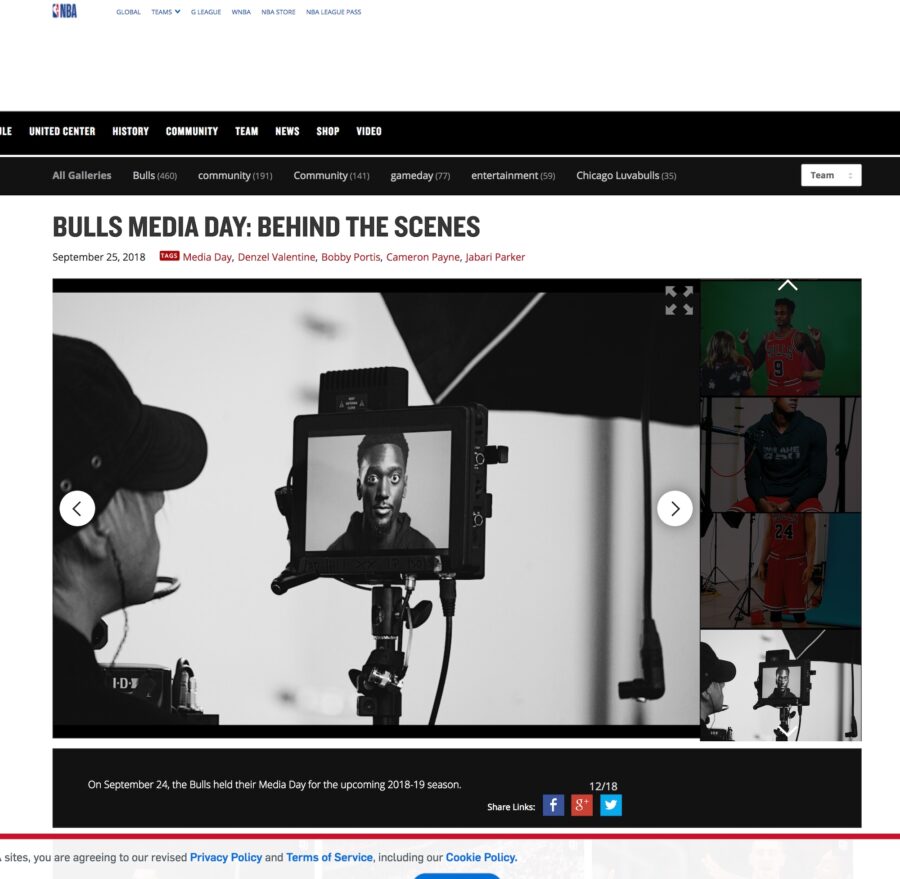 Player interviews during the 2018 media day with the Chicago Bulls. The 2018 lineup included Zach LaVine, Omer Asik, Ryan Arcidiacono, Cristiano Felicio, Kris Dunn, Cameron Payne, Robin Lopez, Antonio Blakeney, and Jabari Parker.